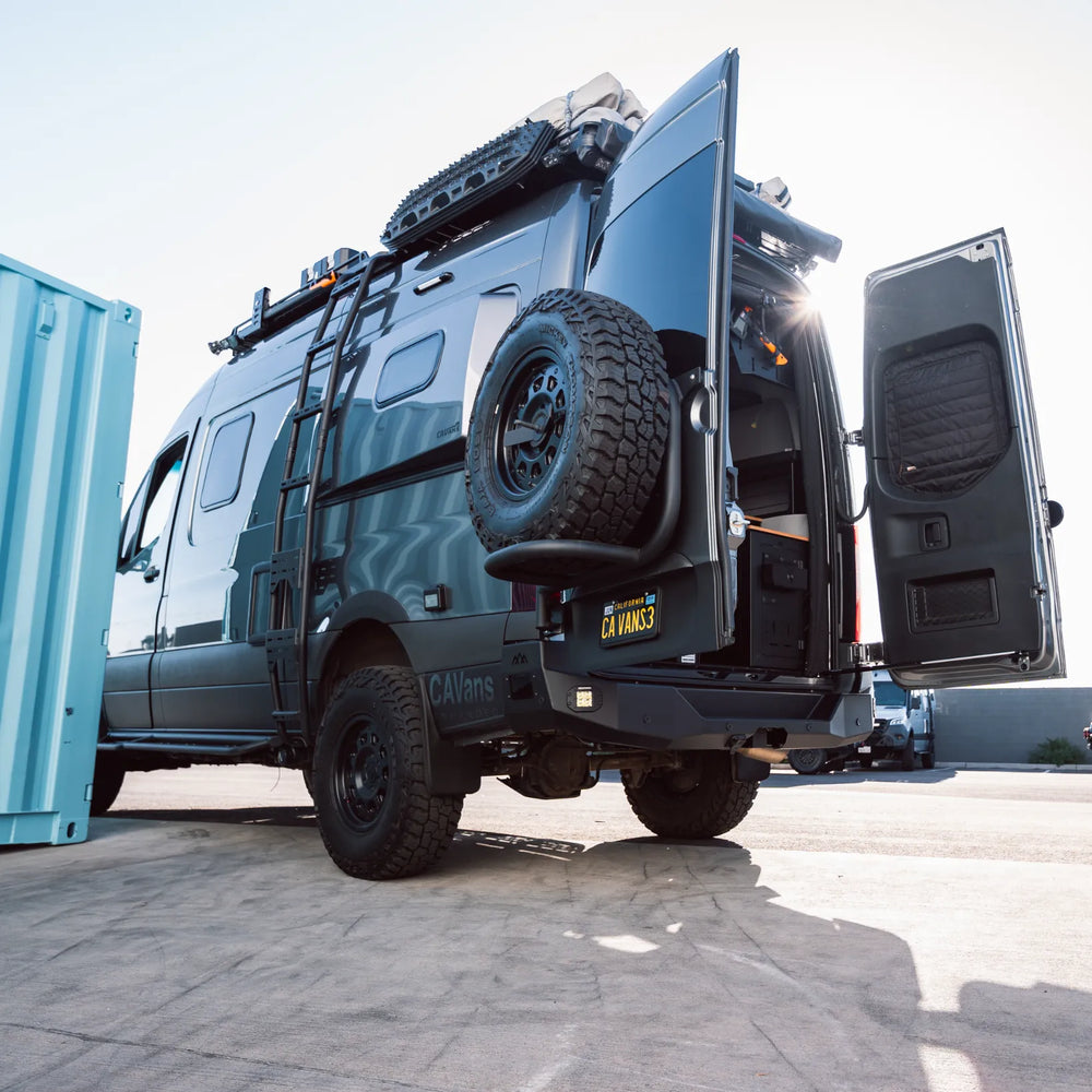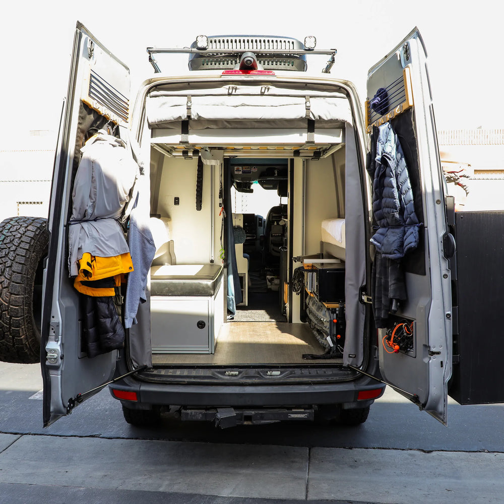The STOP-STAY Door Safety System keeps your Sprinter's rear doors locked open in any condition. No more doors slamming shut while you load, unload, or set up camp. The patented gas strut system holds doors securely in place, even in wind or on uneven ground.